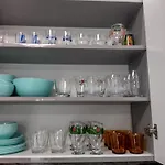 必要な台所用品がすべて揃った設備の整った台所もあります。 Апартамент За Гости Мечта Лазурはブルガス空港から5㎞の所にあります。 都市の眺めを望むテラスもあります。